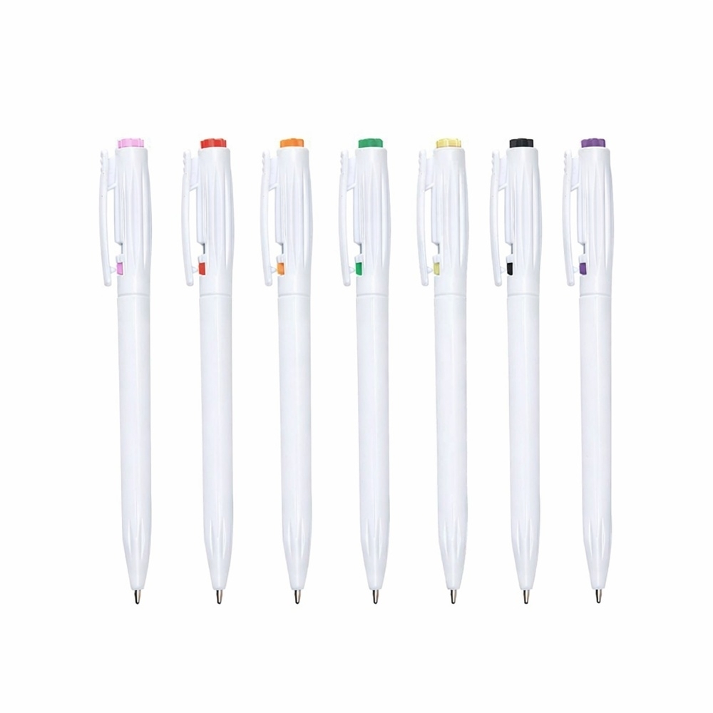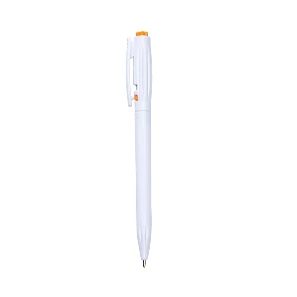 Caneta plástica com carga esferográfica preta 1.0 mm e acionamento por clique.